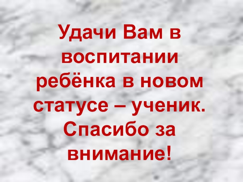 Слайд 23Удачи Вам в воспитании ребёнка в новом статусе – ученик.
