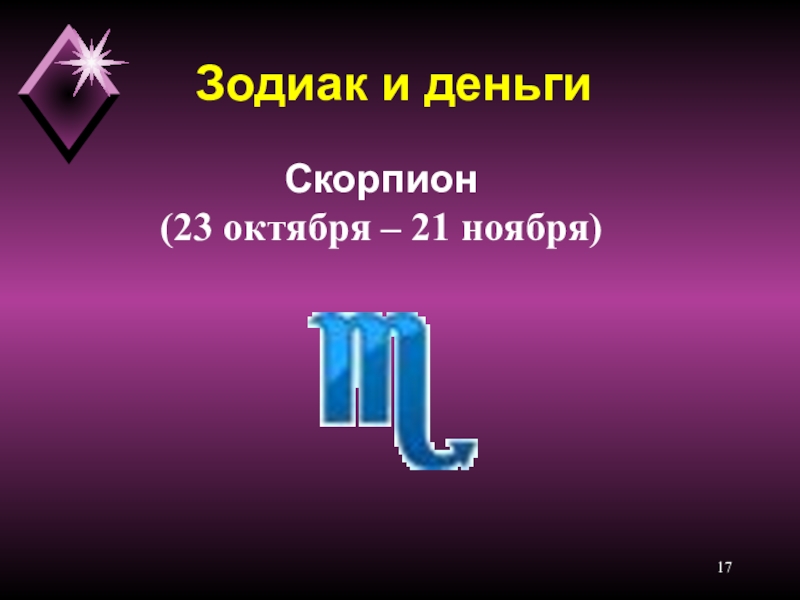 Скорпион (23 октября – 21 ноября)Зодиак и деньги