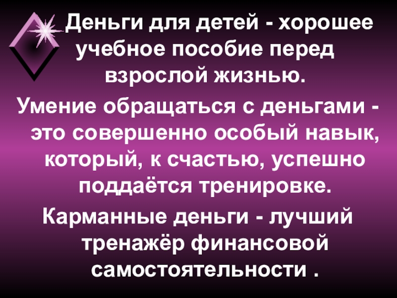 Карманные деньги - лучший тренажёр финансовой самостоятельности .