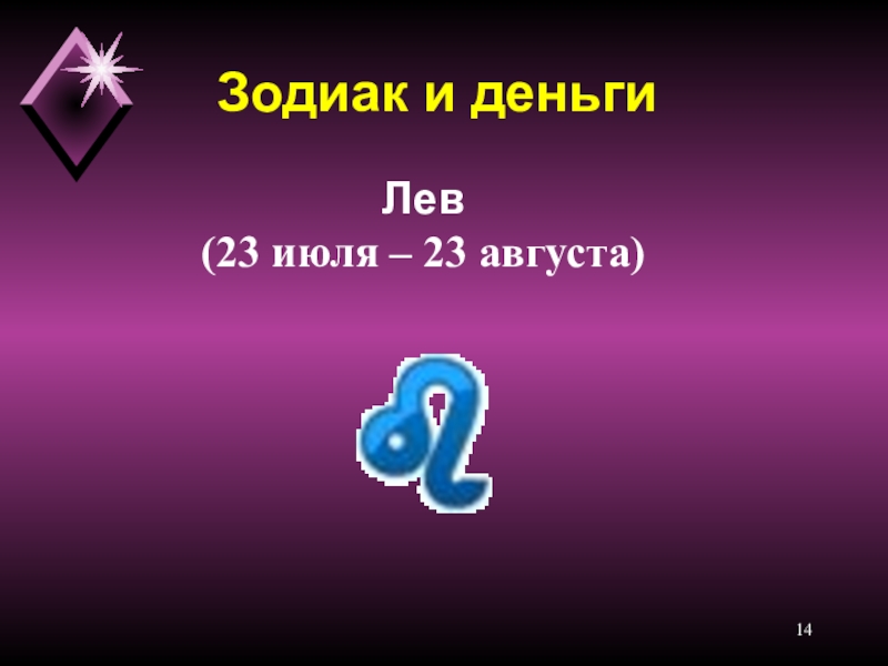 Лев(23 июля – 23 августа)Зодиак и деньги