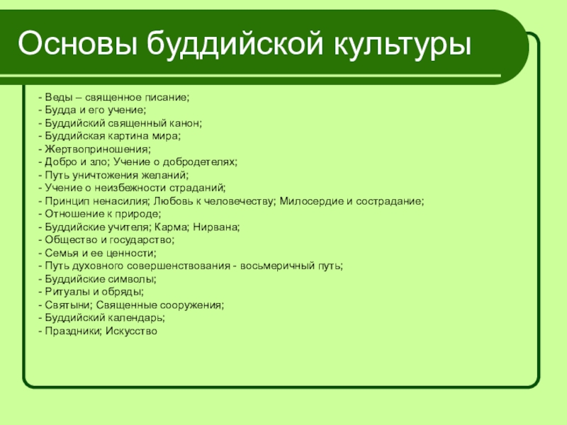 - Принцип ненасилия; Любовь к человечеству; Милосердие и сострадание;