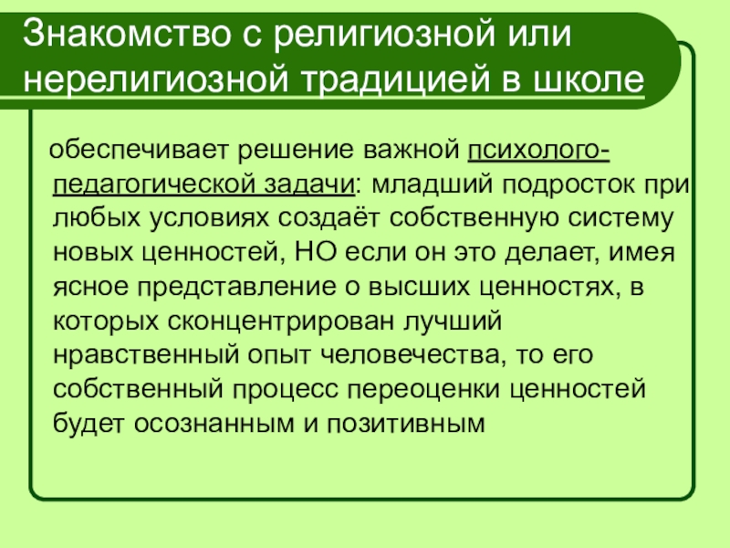 Слайд 5Знакомство с религиозной или нерелигиозной традицией в школе