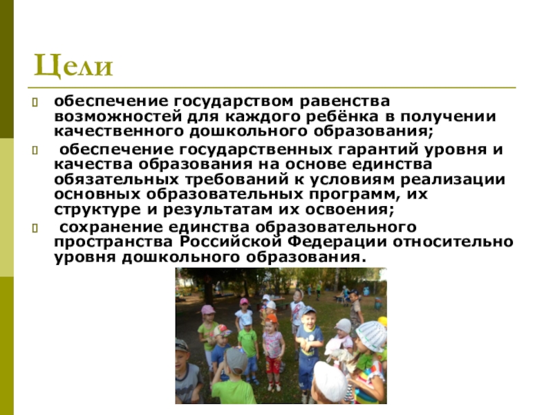 сохранение единства образовательного пространства Российской Федерации относительно уровня дошкольного образования.