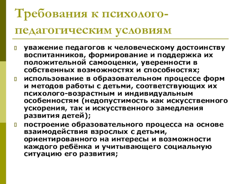 Слайд 13Требования к психолого-педагогическим условиям