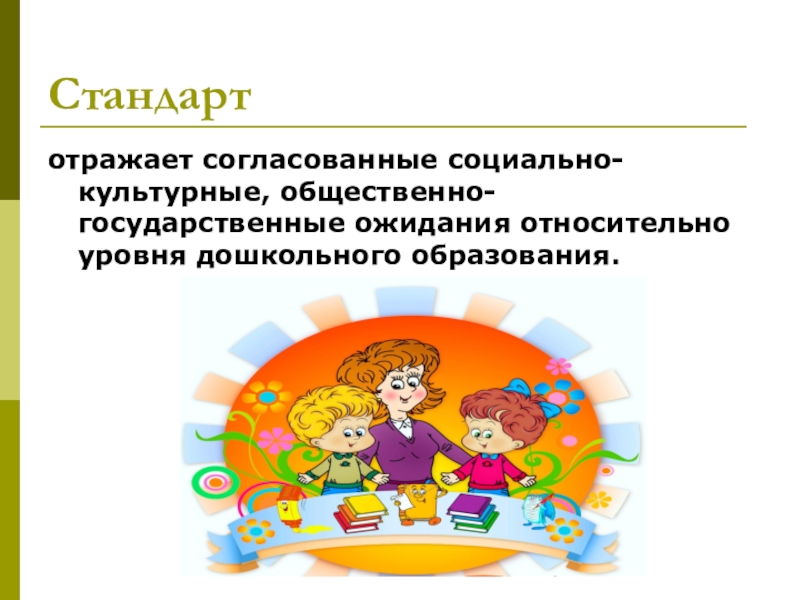 отражает согласованные социально-культурные, общественно-государственные ожидания относительно уровня дошкольного образования.