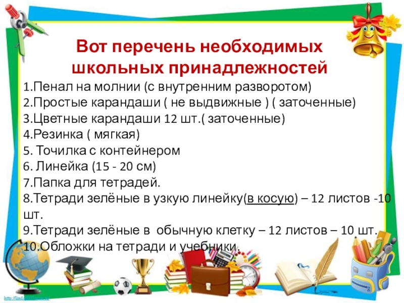 9.Тетради зелёные в обычную клетку – 12 листов – 10 шт.