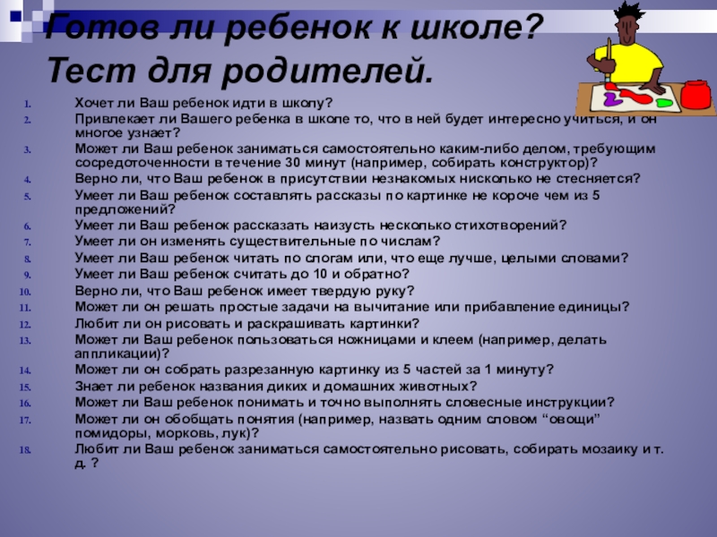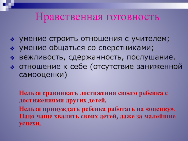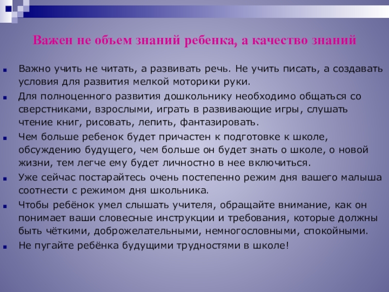 Слайд 4«Быть готовым к школе – не значит уметь читать, писать и
