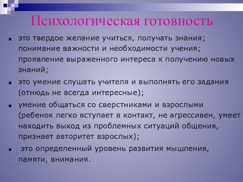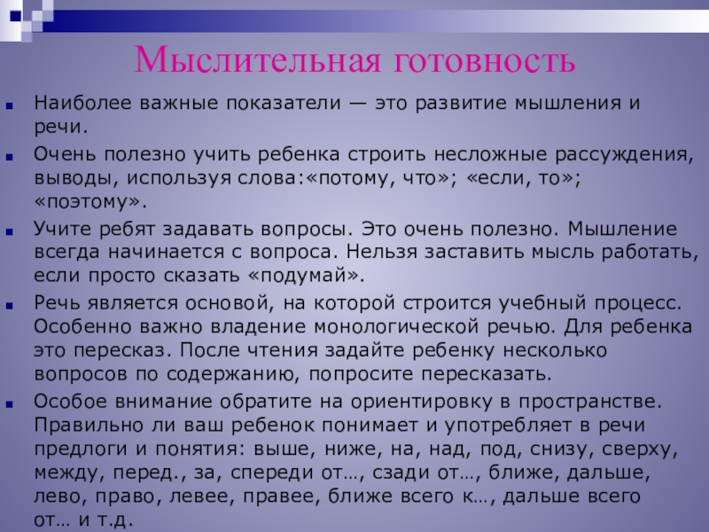 Быть готовым к школе – значит быть готовым всему этому научиться.