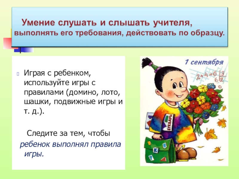 Играя с ребенком, используйте игры с правилами (домино, лото, шашки, подвижные