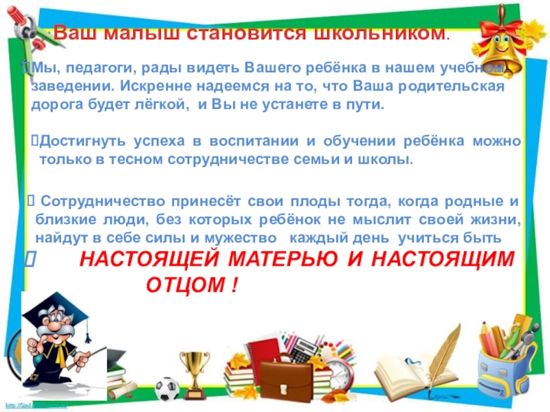 учебном заведении. Искренне надеемся на то, что Ваша родительская дорога будет лёгкой, и Вы не устанете в пути.