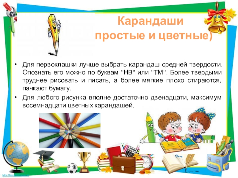 Для первоклашки лучше выбрать карандаш средней твердости. Опознать