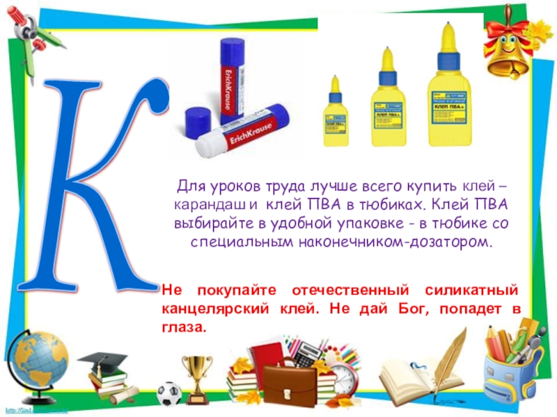 Для уроков труда лучше всего купить клей –карандаш и клей