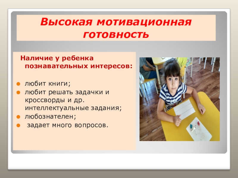 Слайд 6Высокая мотивационная готовность