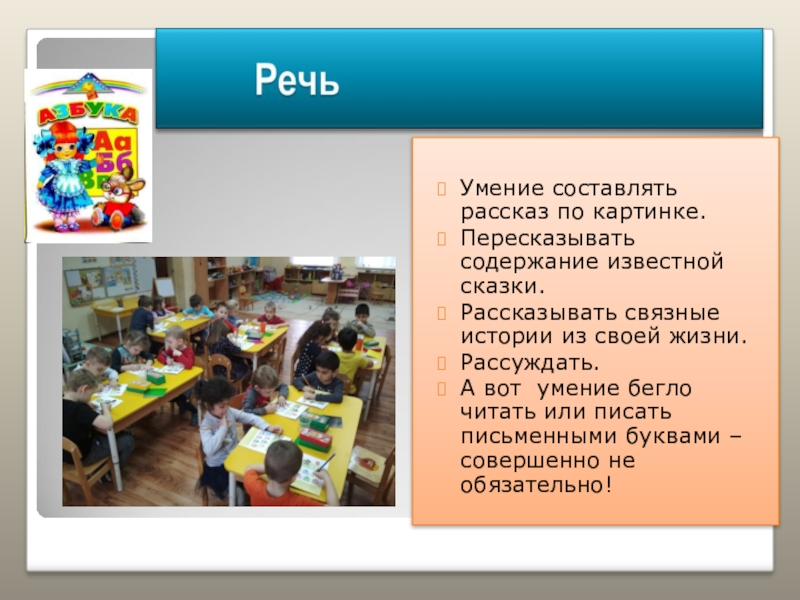 А вот умение бегло читать или писать письменными буквами – совершенно не обязательно!