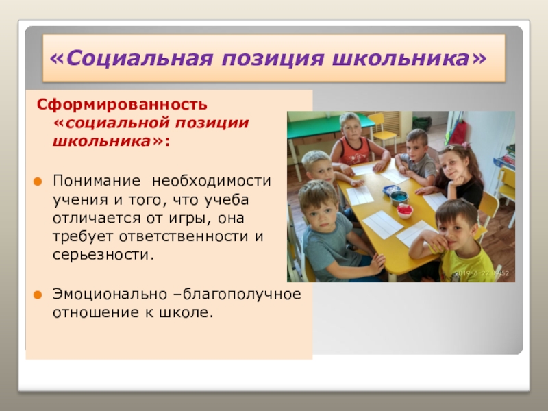 Слайд 8«Социальная позиция школьника»