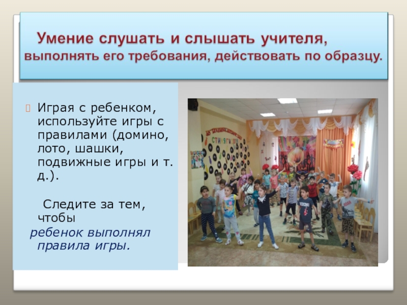 ребенок выполнял правила игры.
