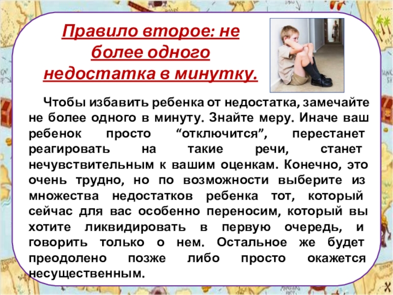 Слайд 10Правило второе: не более одного недостатка в минутку.
