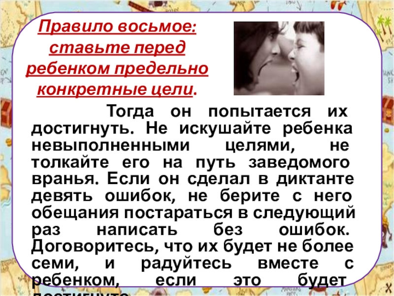 Слайд 16Правило восьмое: ставьте перед ребенком предельно конкретные цели.
