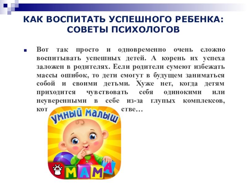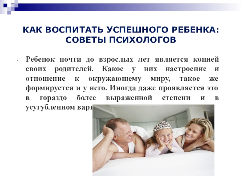 Слайд 10Как воспитать успешного ребенка: советы психологов