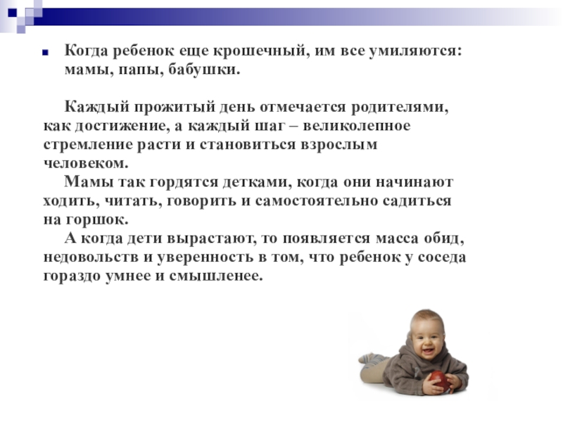 Слайд 2Когда ребенок еще крошечный, им все умиляются: мамы, папы, бабушки.