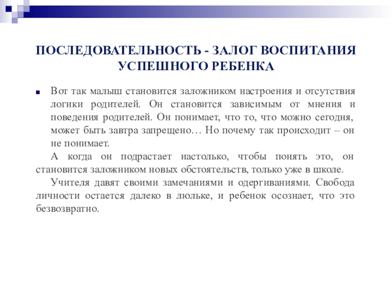 Слайд 4Последовательность - залог воспитания успешного ребенка