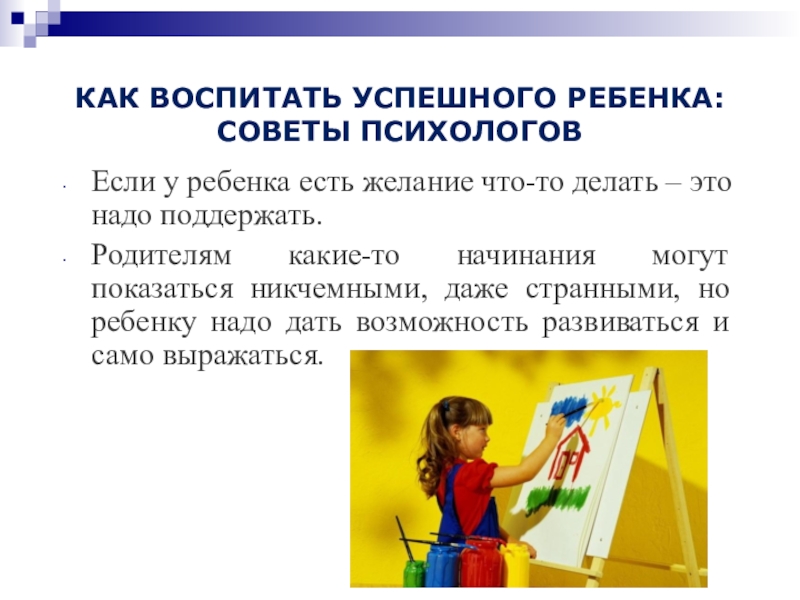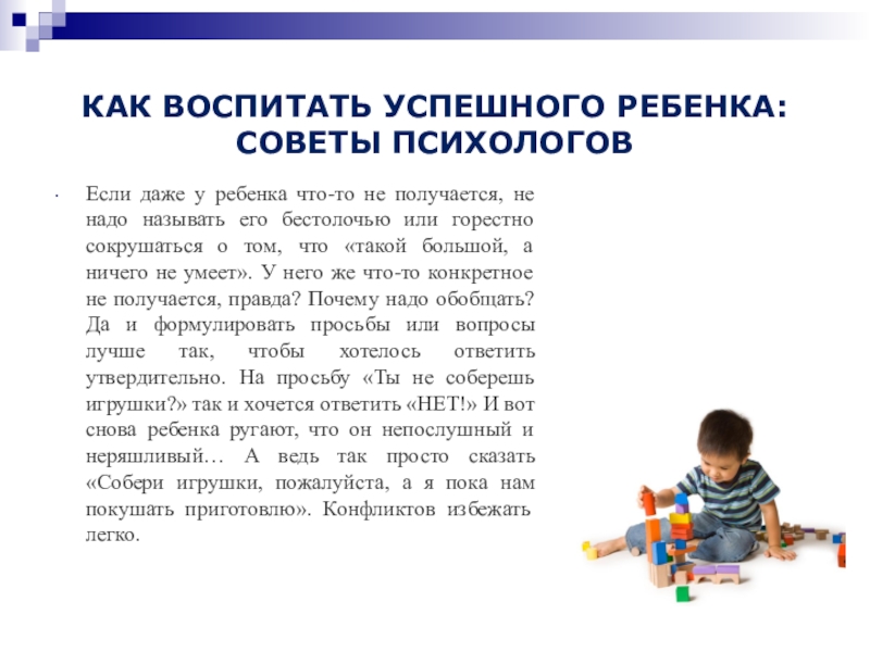 Слайд 13Как воспитать успешного ребенка: советы психологов