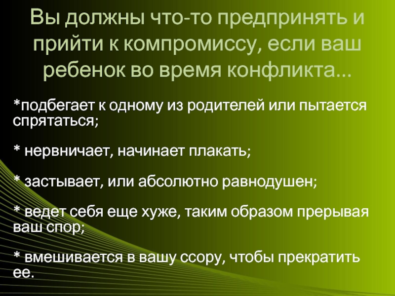 Вы должны что-то предпринять и прийти к компромиссу, если ваш ребенок во время конфликта...