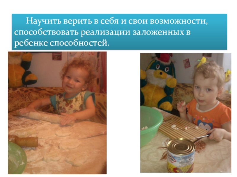 Научить верить в себя и свои возможности, способствовать реализации заложенных в ребенке способностей.