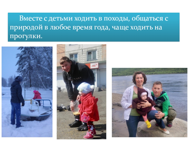 Слайд 6 Вместе с детьми ходить в походы, общаться с природой в любое
