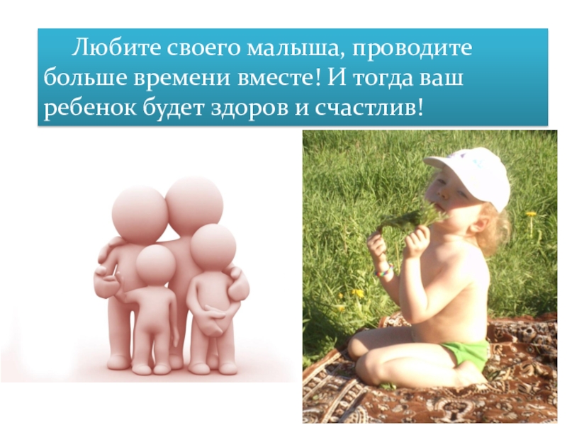 Слайд 10 Любите своего малыша, проводите больше времени вместе! И тогда ваш ребенок
