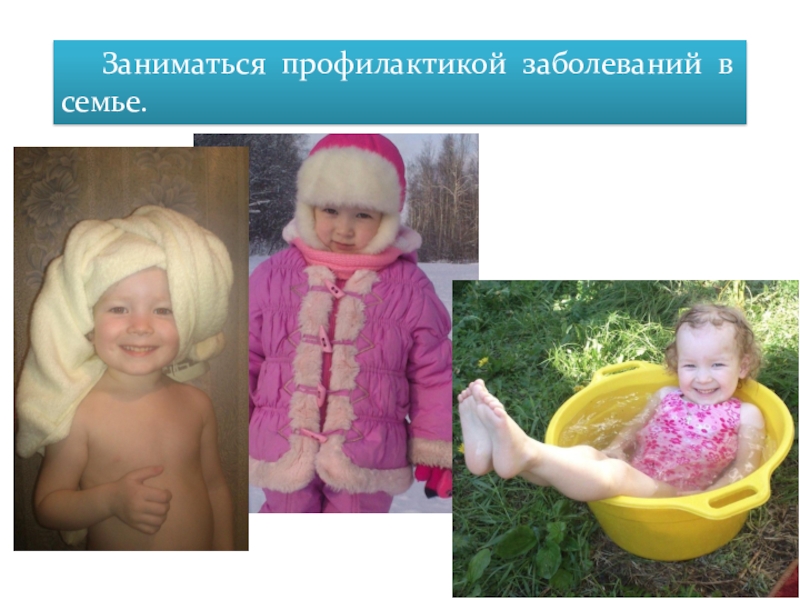 Слайд 7 Заниматься профилактикой заболеваний в семье.