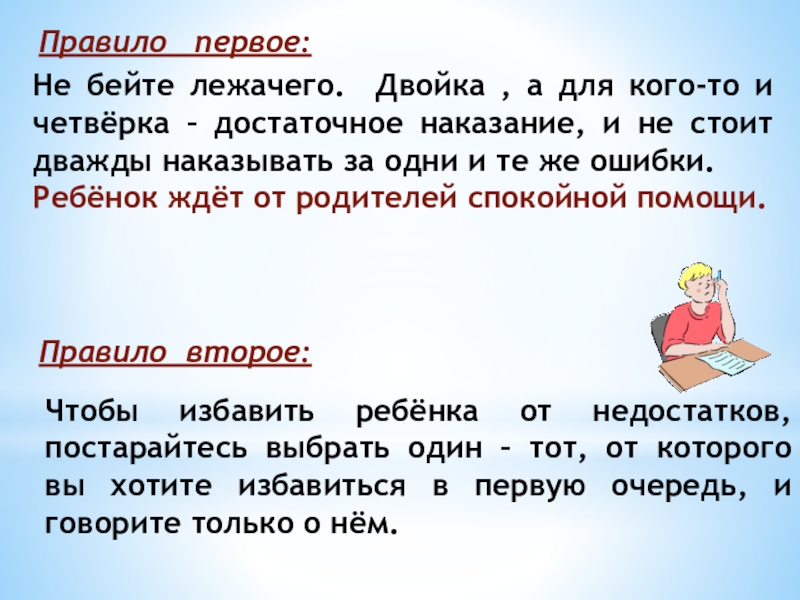 Чтобы избавить ребёнка от недостатков, постарайтесь выбрать один – тот, от которого вы хотите избавиться в первую очередь, и говорите только о нём..
