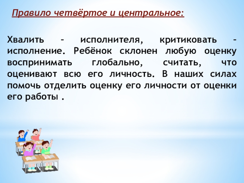 Хвалить – исполнителя, критиковать – исполнение. Ребёнок склонен