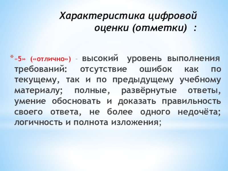 Слайд 15Характеристика цифровой оценки (отметки) :