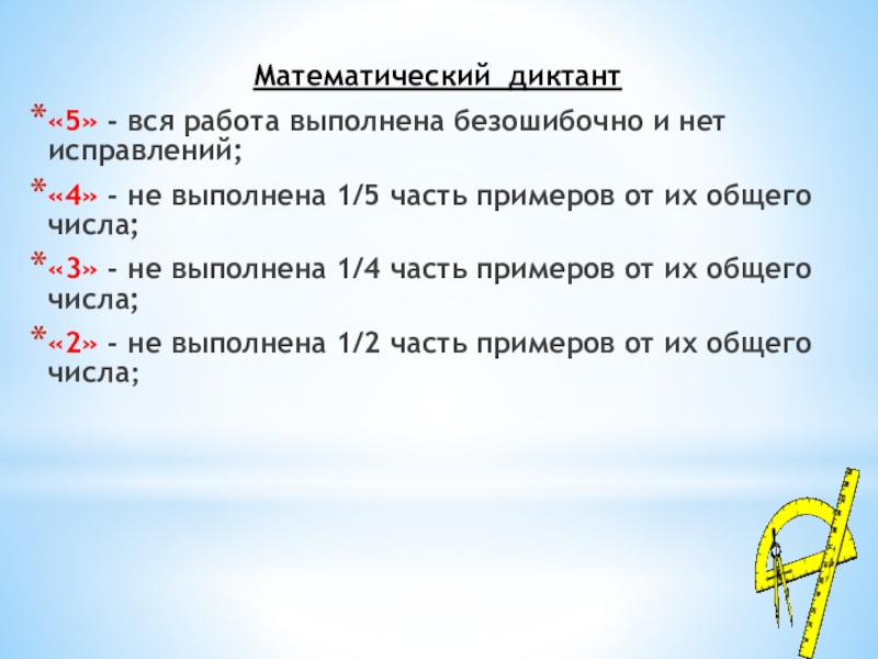 Слайд 27Математический диктант