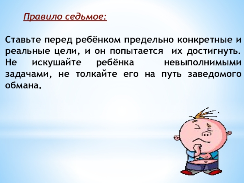 попытается их достигнуть. Не искушайте ребёнка невыполнимыми задачами, не толкайте его на путь заведомого обмана.