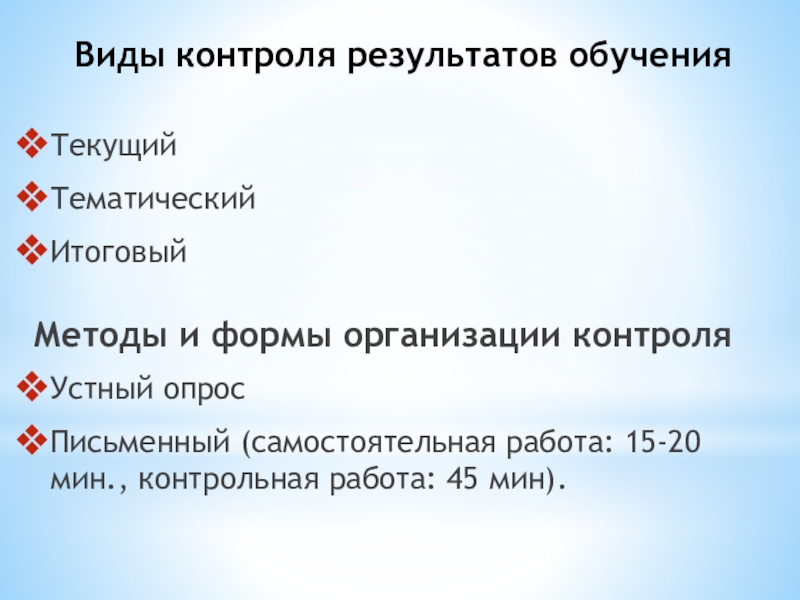 Слайд 14Виды контроля результатов обучения