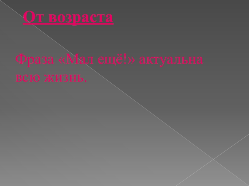 От возрастаФраза «Мал ещё!» актуальна всю жизнь.