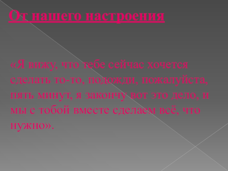 От нашего настроения«Я вижу, что тебе сейчас хочется сделать то-то, подожди, пожалуйста, пять минут, я закончу вот