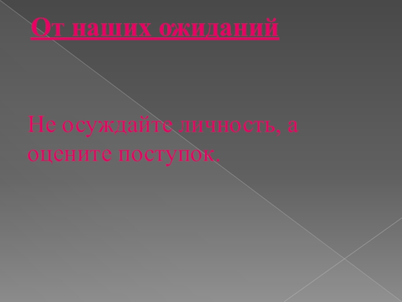 От наших ожиданийНе осуждайте личность, а оцените поступок.