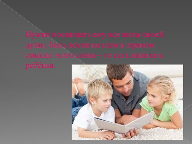 Слайд 4Нужно посвящать ему все вилы своей души, быть воспитателем в прямом