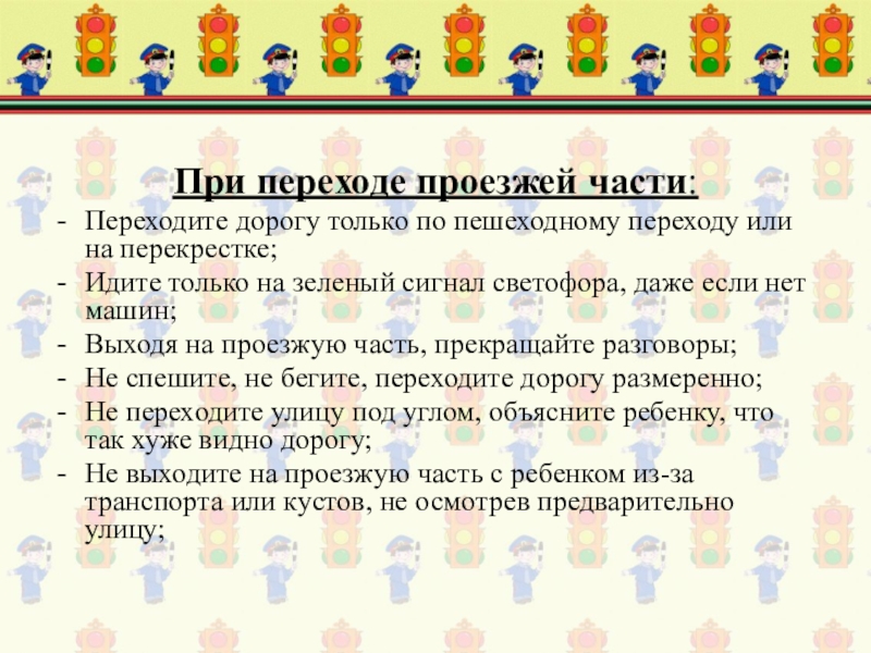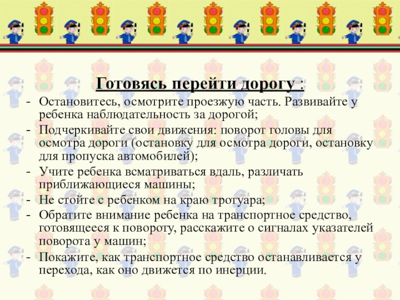 обратите внимание ребенка, нет ли приближающегося транспорта;