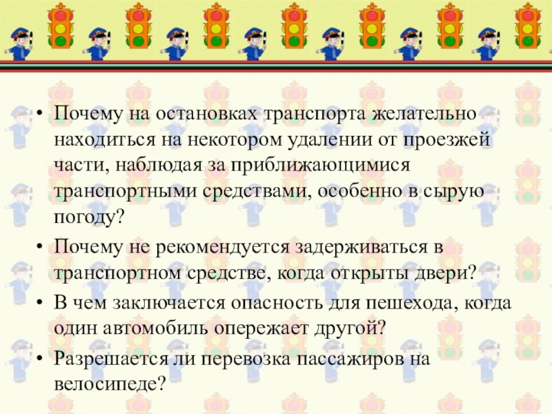 7. Почему перед тем, как переходить проезжую часть, нужно остановиться и осмотреться?