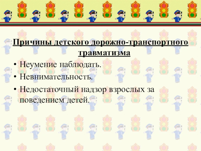 Причины детского дорожно-транспортного травматизма