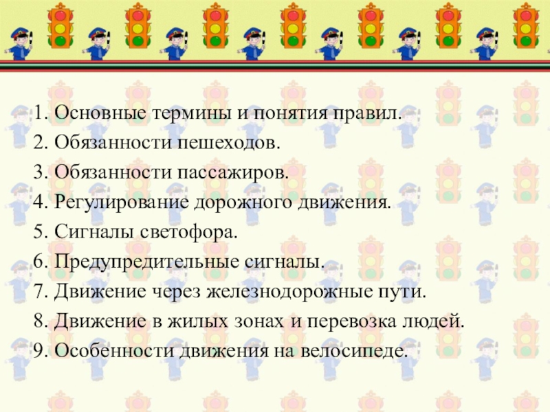 8. Движение в жилых зонах и перевозка людей.