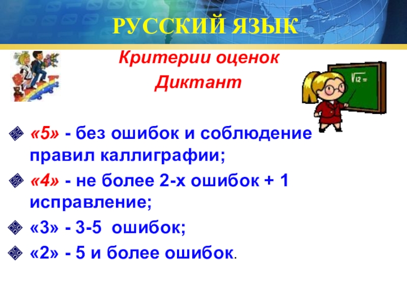 «5» - без ошибок и соблюдение правил каллиграфии;