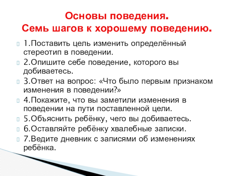 Семь шагов к хорошему поведению.