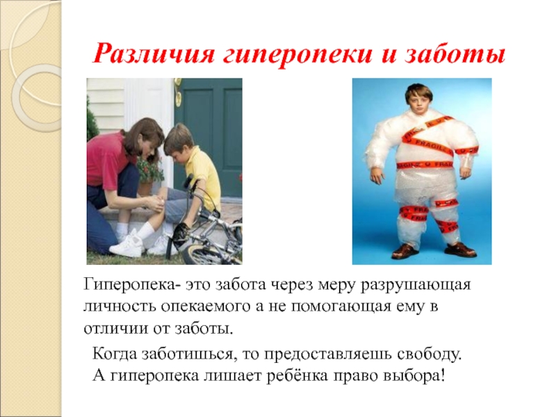 Когда заботишься, то предоставляешь свободу. А гиперопека лишает ребёнка право выбора!