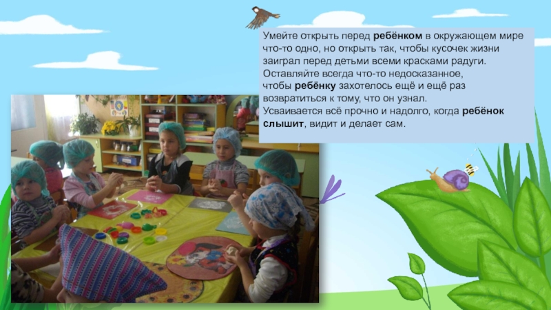Слайд 11Умейте открыть перед ребёнком в окружающем мире что-то одно, но открыть так, чтобы