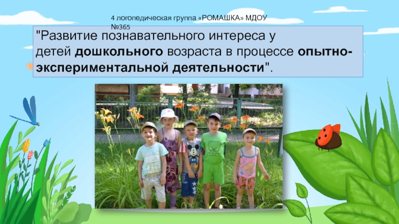 Слайд 1"Развитие познавательного интереса у детей дошкольного возраста в процессе опытно-экспериментальной деятельности".